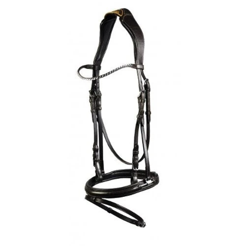 Bridle with contoured and anatomic crownpiece. Featuring a special insert to relieve pressure in the poll area.