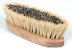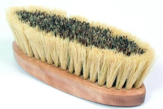 Varnished wooden back dandy brush with mexican fibre bristles.
