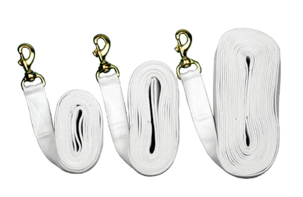- Made using 1 1/4″ white cotton webbing (loop handle) with strong solid brass swivel trigger hook.