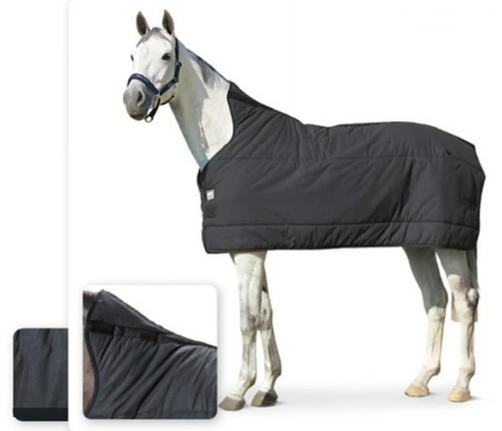 A cotton -polyester under rug with extended neck for use in addition to a stable rug, made of a cotton-polyester mix with 240g padded filling
