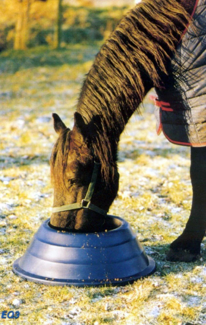 Very large heavy plastic feeder that is very difficult for horses to tip over.