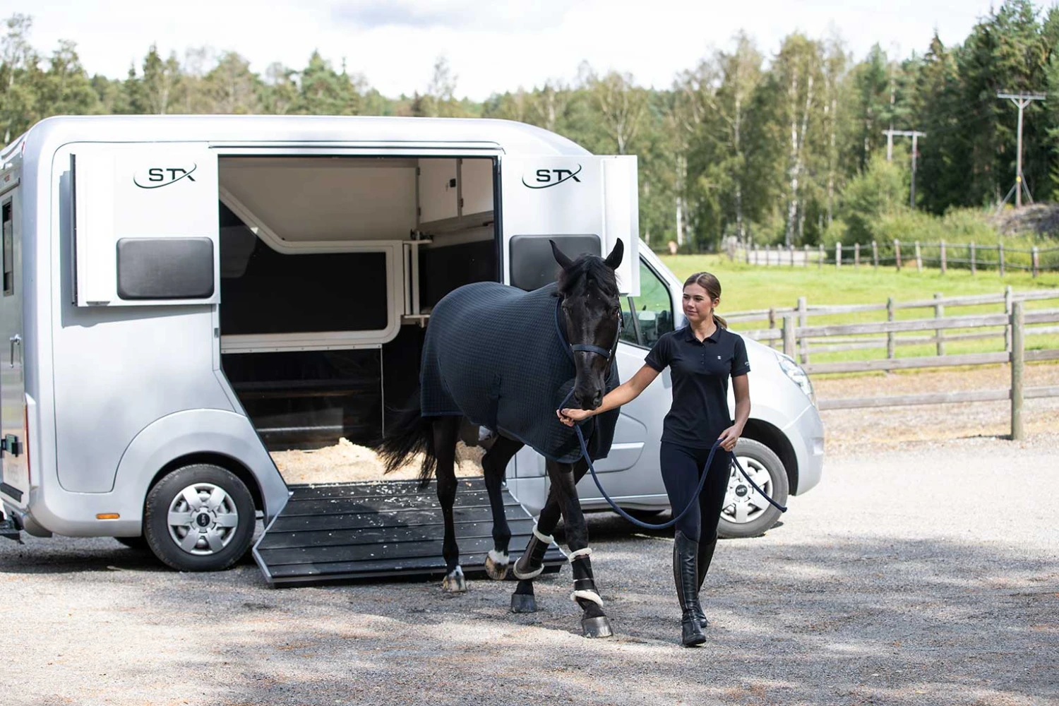 The 3-layered thermo fabric with wicking functions is quick dry and acts with temperature control. The lining is anti-static whilst the surface has anti-slip qualities. The elastic tail string is adjustable, two cross-over surcingles and two front buckles helps the rug stay in place during activity.