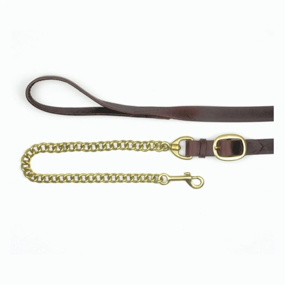 - Made using Classic quality leather. Six foot long by 1″ wide, with brass buckle fitting, with 24″ soild brass chain with a trigger hook end.