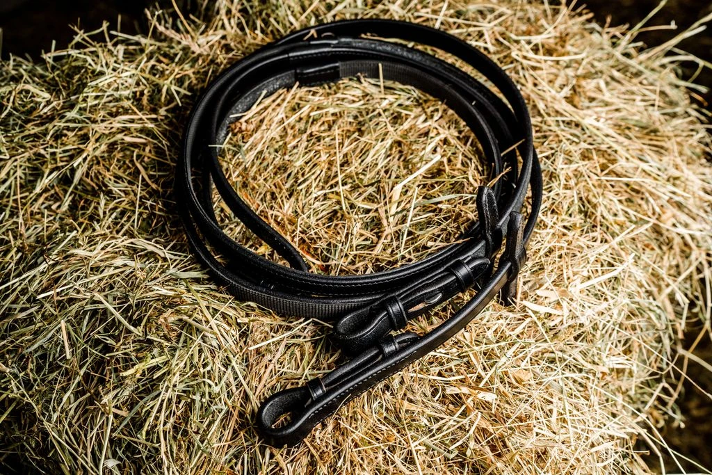- These reins have a sleeker design than traditional rubber reins, with grip on the inside and plain leather on the outside.