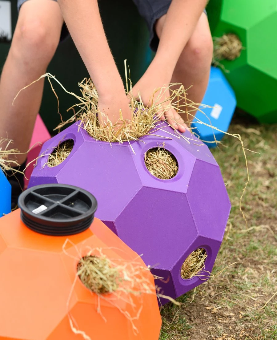 This entertains your equine whilst also giving the benefits of a slow feed without the need for extra treats. It offers brilliant strength and durability.