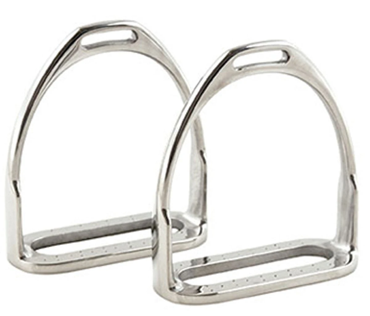 PSOB (Prussian Sided Open Bottomed) Stirrups are plain, open bar stirrups made from stainless steel. They have a rounder shape than normal fillis irons