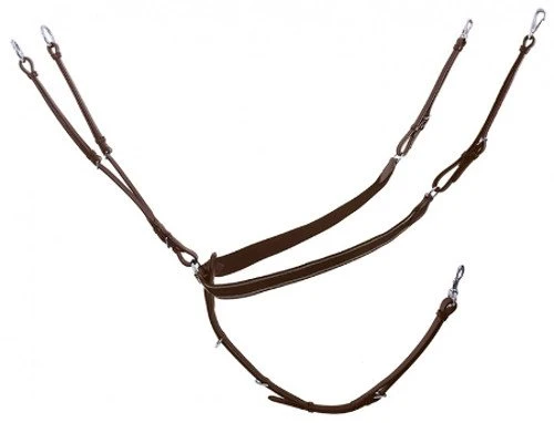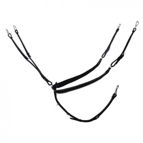 The Schockemohle Pro Jump II Breastplate includes a removable martingale fork, two colour breast straps and inlaid rings.
