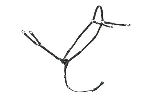 It has elastic side parts and a removable martingale fork. There are various adjustments to ensure a perfect fit.