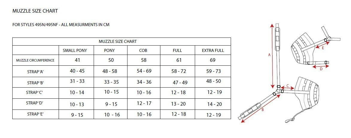 | All measurements in CM | Small Pony | Pony | Cob | Full | Extra Full |