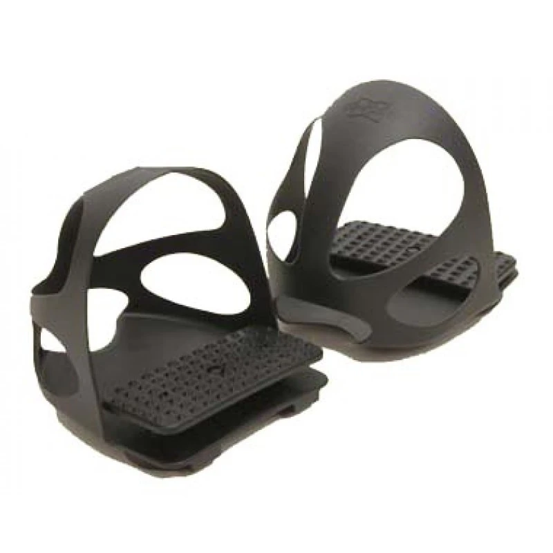 These MATRIX toe cage stirrup treads are made of tough, durable, lightweight plastic. Ideal for cross-country, trekking and endurance and also for beginners as they help to stop the foot going through the stirrup. Easily fitted to most kinds of stirrups with two locking nuts