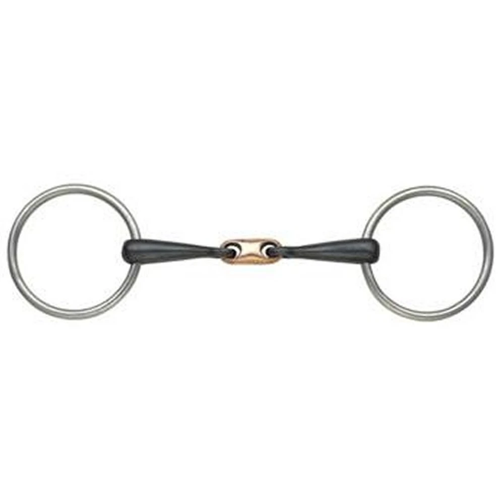 The sweet iron and copper combination used in this training bit provides a warm bit for the horse which encourages salivation and emits a pleasant taste