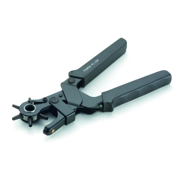 A deluxe version of the original hole punch with marked hole sizes and ergonomic handle