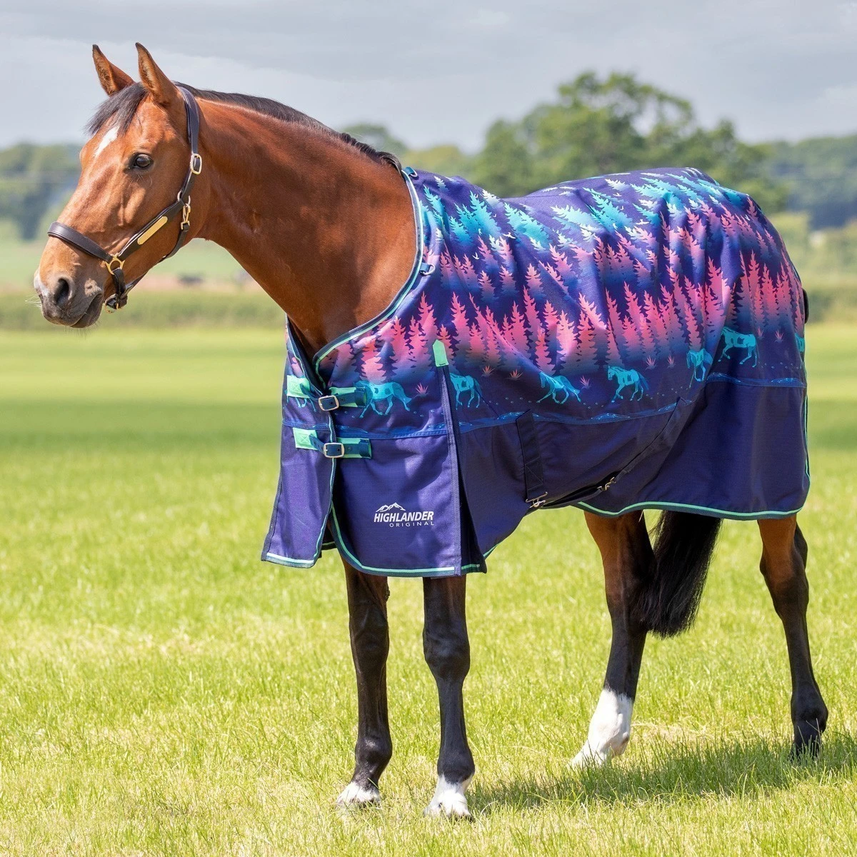 The Highlander Original 100 Turnout Rug is a 100 gram fill turnout with twin buckle breast straps, adjustable cross surcingles, adjustable fillet straps and deep houlder gussets to allow freedom of movement.
