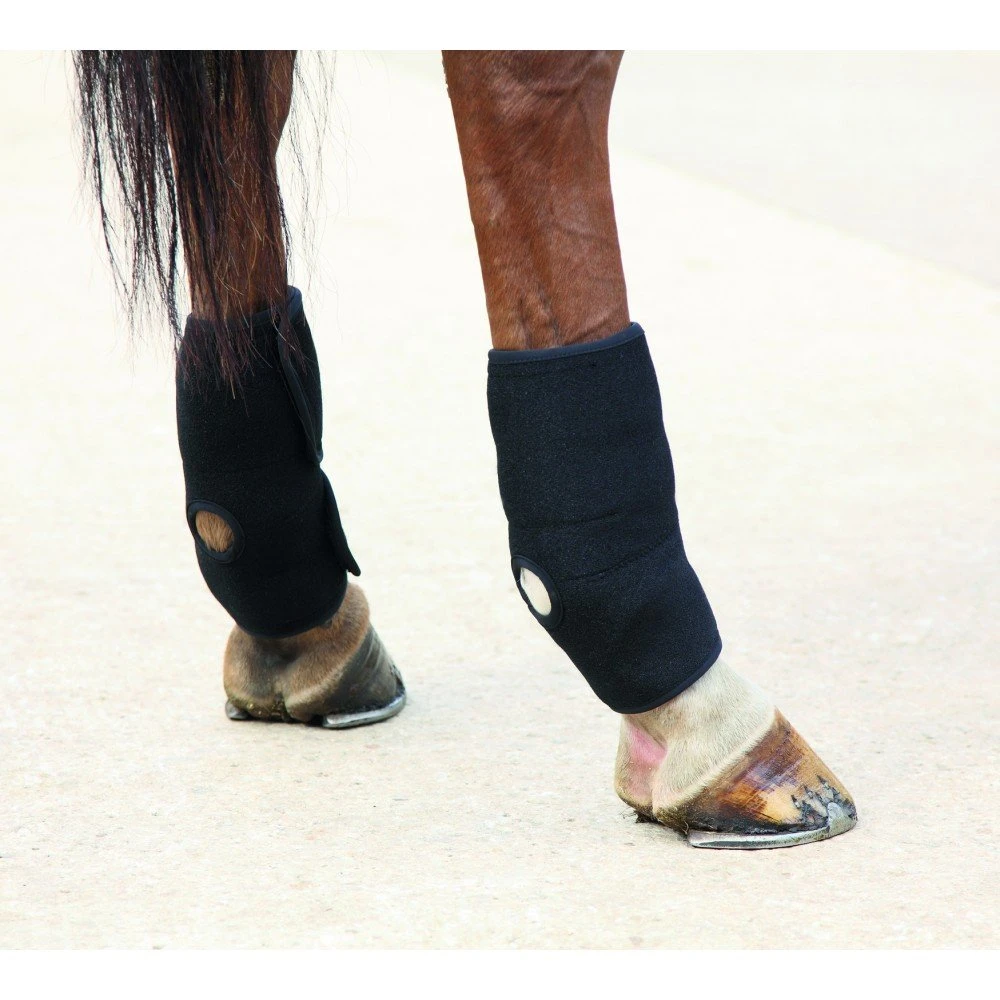 Suitable for use on the knees, elbows or fetlocks.Inner pockets keep gel packs secure