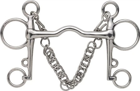Can be used with double reins or pelham roundings. Mouthpiece thickness: 14mm. Cheek height: 130mm (4.5″, 5″), 140mm (5.5″).