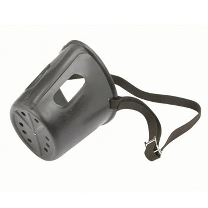 Shires plastic muzzle complete with nylon strap. This restrict grass intake but allows them to drink