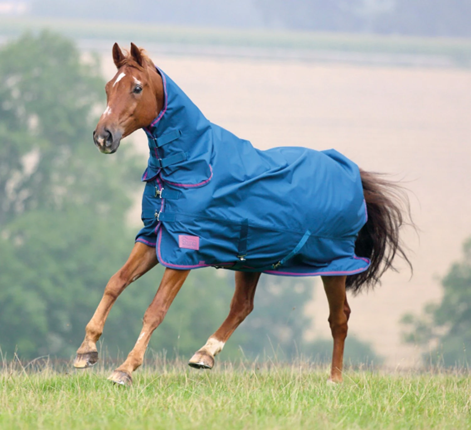 Fully waterproof and breathable, it features a 600 denier Shire Tex ripstop outer, full lining, integrated contour neck cover, clip breast straps, adjustable cross surcingles and fillet strap and a tail flap