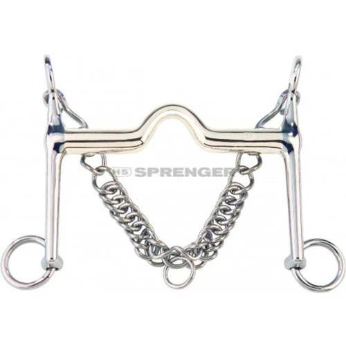 With flexible hooks and relatively high port.By pulling the reins the rider can change the angle of the Weymouth to apply pressure on the palate with the high port. The Weymouth can therefore only be recommended for experienced and precise rider hands.