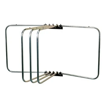 The ultimate rug rack with five swivelling arms mounted on two STUBBYFINE coated wall brackets. Configured to allow adjoining units, thus creating continuous storage or display. It provides a perfect solution to drying and storing rugs and blankets, reducing the risk of damage due to damp or vermin. A small knob on the upper side of each arm deters rugs from sliding off as selection takes place.