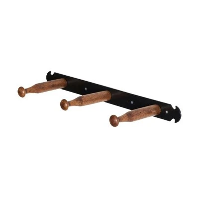 Evoking the quality and class of centuries gone by, the stylish metalwork and beautiful dark wood create a very high class tack rack. The classic turnings have a traditional end finial. Strong, dark and good looking the huge 18cm/7″ long pegs are steel reinforced; they will not droop!