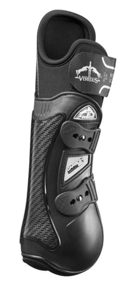 Softflex™ Bi-TECH™ Synthetic extended knee and pastern coverage with Dual Density Semi Rigid-PU™ and EVA™ Foam shell and Carbon Fiber™ strike plate with Nitrexgel™ that reduces the transmission of shocks and impacts by 40% providing the highest area of coverage that is supportive and comfortable for the horse.