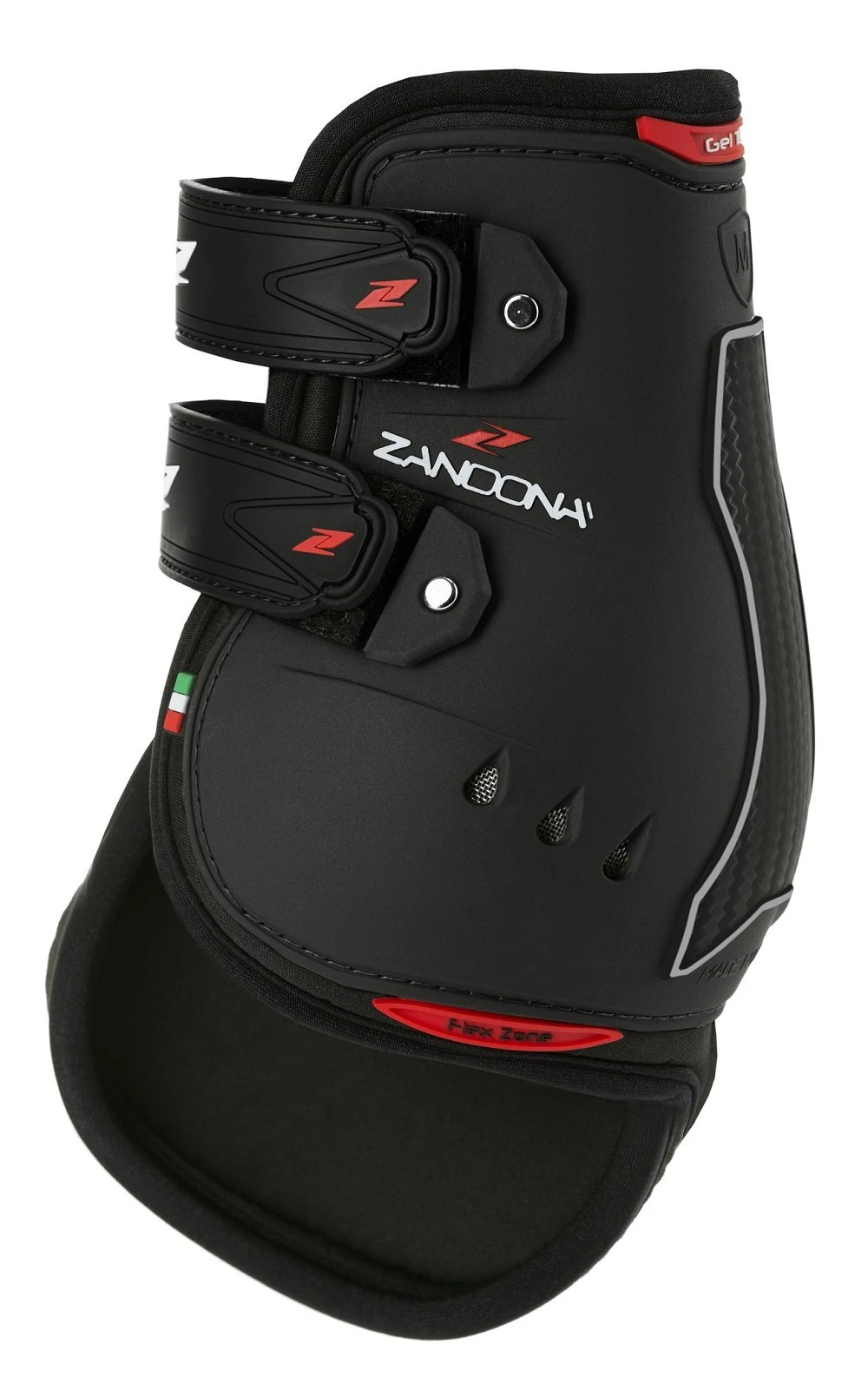 Carbon Fibre elements are present under the shell to thermally insulate the joints from the heat generated by external friction, while increasing the mechanical resistance to impacts. On the external side, closed to the pastern, have been created a Flex-Zone, necessary to allow maximum freedom of movement to the limb.