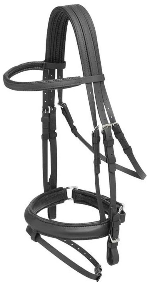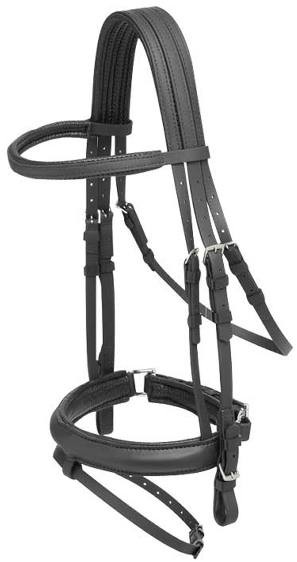 The Dressage bridle has an extra wide padded head and crank style hanoverian noseband. Reins are not included