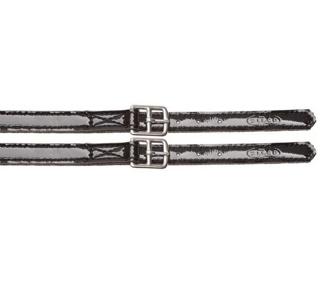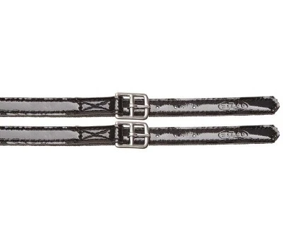 Nylon webbing covered with patent material. These are extremely lightweight whilst still strong.