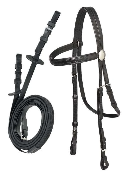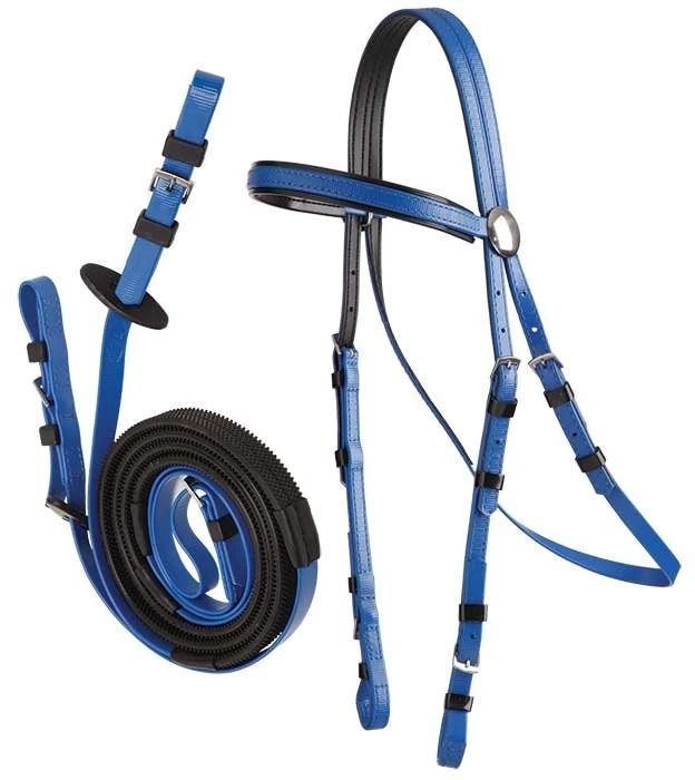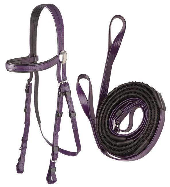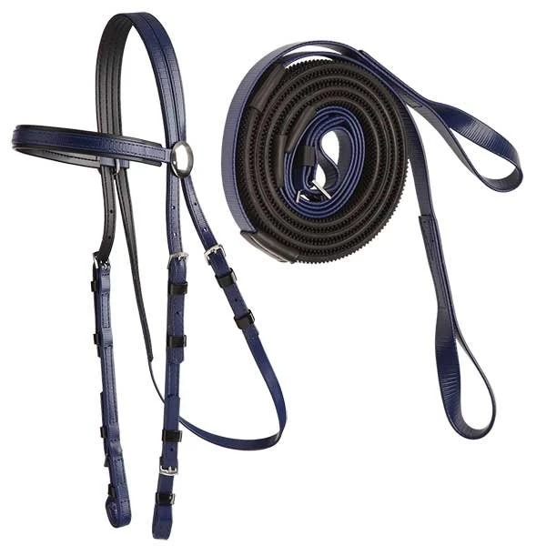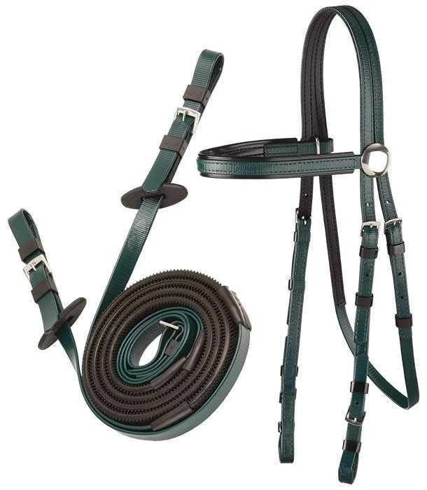 This set comprises our lightweight Race bridle, with a set of matching buckle end reins.